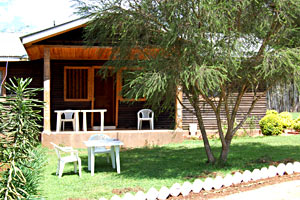 The 2 timber cottages are located within a green 1 acre green garden with free view to Mount Elgon.